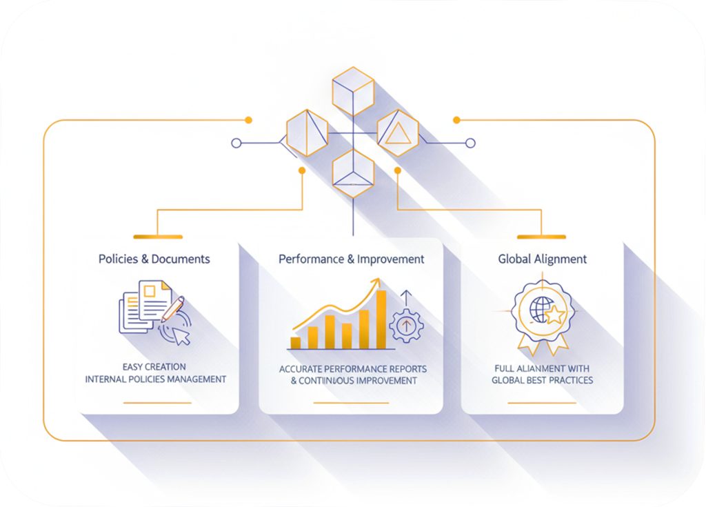حل شامل لتوثيق السياسات والإجراءات داخل المنشأة، يُعزّز مبدأ الشفافية والمساءلة، مما يُمكّن الإدارة من واتخاذ قرارات دقيقة مبنية على البيانات